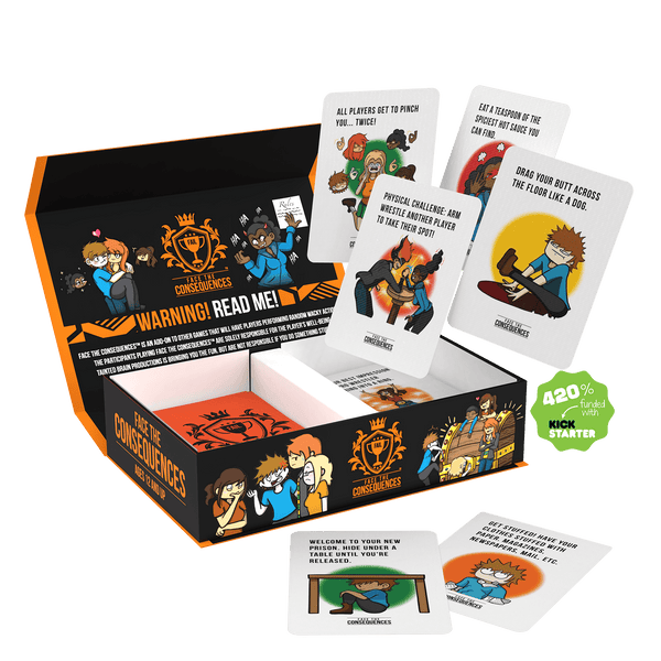 Add ridiculous, outrageous, and hilarious consequences for the losers of any party game. Great for game nights, family gatherings, and much more!